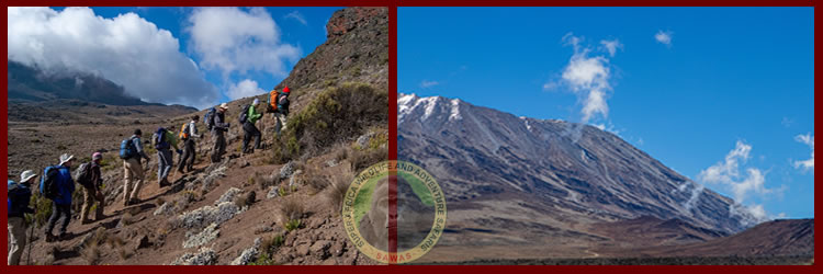After breakfast, hike to Barranco (3950 m) skirting just below Lava Tower - you will be walking at approx altitude of 4000 m around the southern side of the Kibo.